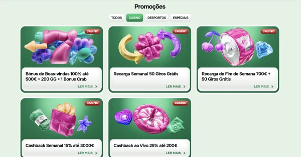 As nossas promoções estão estruturadas para novos e atuais jogadores, com pontos de entrada claros na caixa e na área de promoções. Pode ver se uma oferta precisa de código, depósito mínimo ou jogos específicos antes de a ativar. Se estiver à procura de um bónus sem depósito do casino Casinolo, tenha em conta que este tipo de oferta não está listado como promoção padrão no nosso site, por isso verifique sempre a página atual de promoções para ver o que está ativo. No desporto e no casino, as condições podem diferir, por isso leia a linha de wagering correspondente ao produto que utiliza.